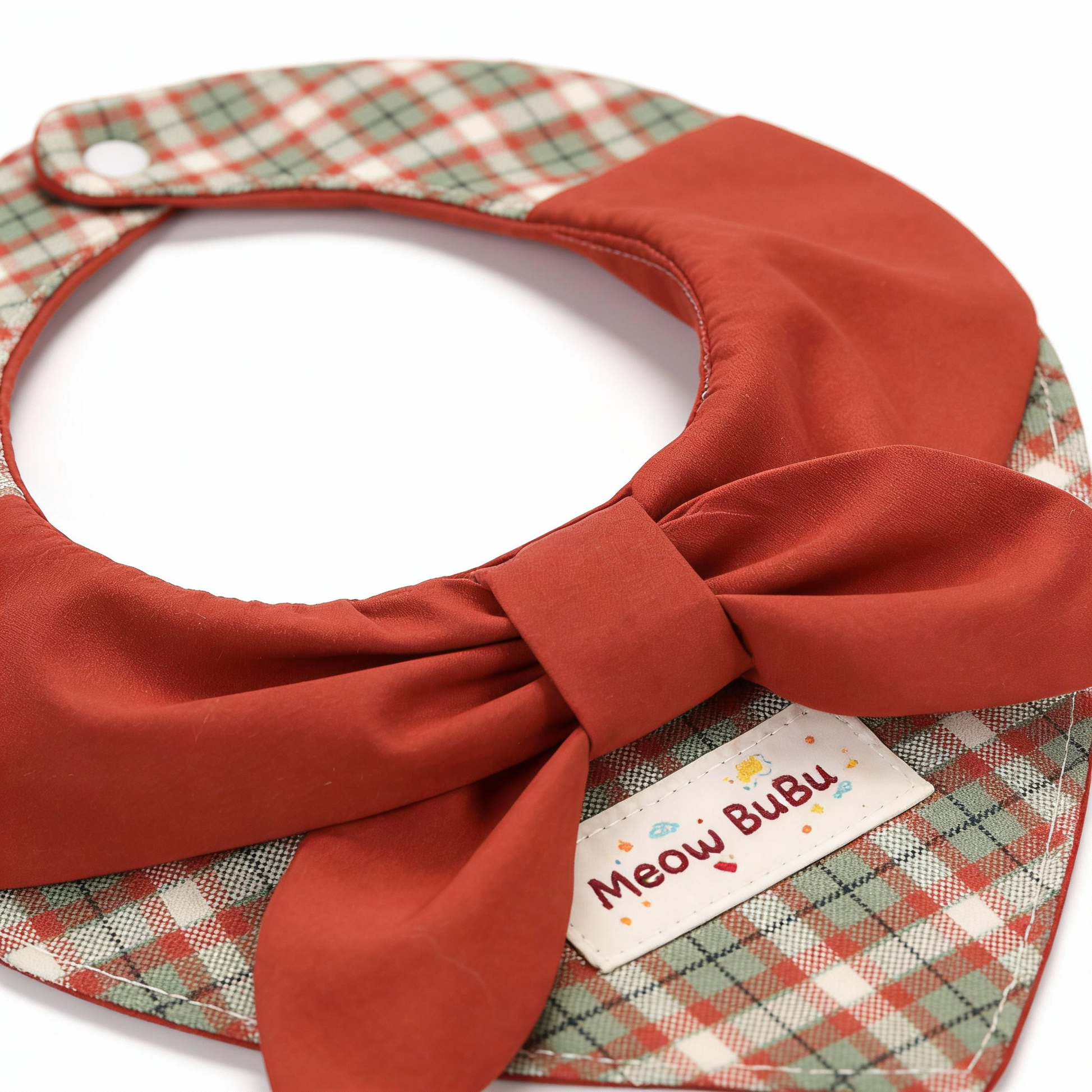 This bib combines warm caramel tones with autumn-inspired maple leaves, featuring a delicate bow design that's both practical and stylish. Designed for pets, it’s easy to clean, soft, and comfortable, perfect for any daily outfit. An elegant accessory that’s a must-have for your pet’s wardrobe.